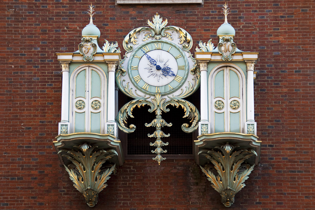 Molto più recente, ma associata a un nome ormai leggendario dello shopping londinese, è la coppia di automi che adornano il negozio di Liberty in Great Marlborough Street. Il grande orologio, che risale al 1924 e troneggia sulla facciata dell’edificio, anima due ospiti d’eccezione: nientemeno che il protettore dell’Inghilterra San Giorgio e il Drago, suo eterno nemico.