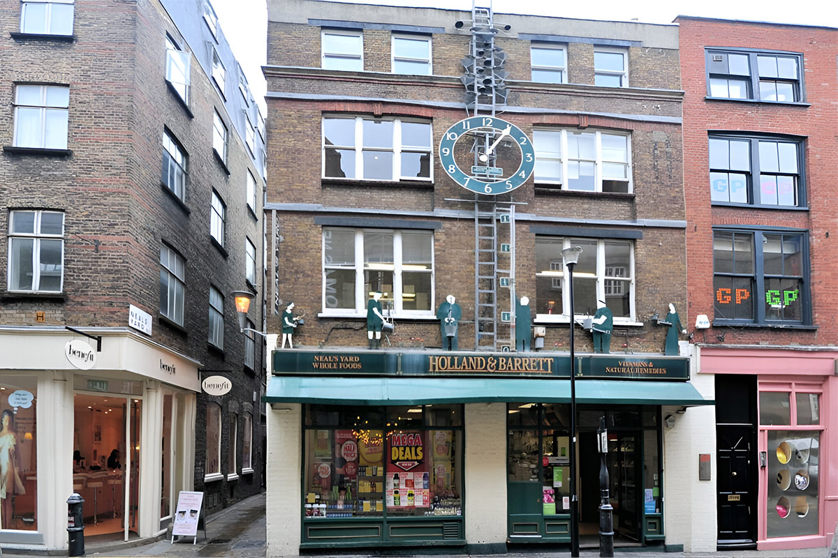 Sull’antico edificio che ospita la loro sede principale c’è uno degli orologi di Londra che meglio esprime il gusto British. Nonostante l’aria antica, è datato 1964. Dotato di un carillon, scandisce le ore con l’uscita di due automi che raffigurano due distinti gentiluomini, in panni settecenteschi. Chi sono? Ma i due fortunati e abili fondatori della Premiata Ditta, che escono dalle loro nicchie per salutare i presenti con tanto di teiera in mano, mentre il carillon offre il sottofondo musicale.
