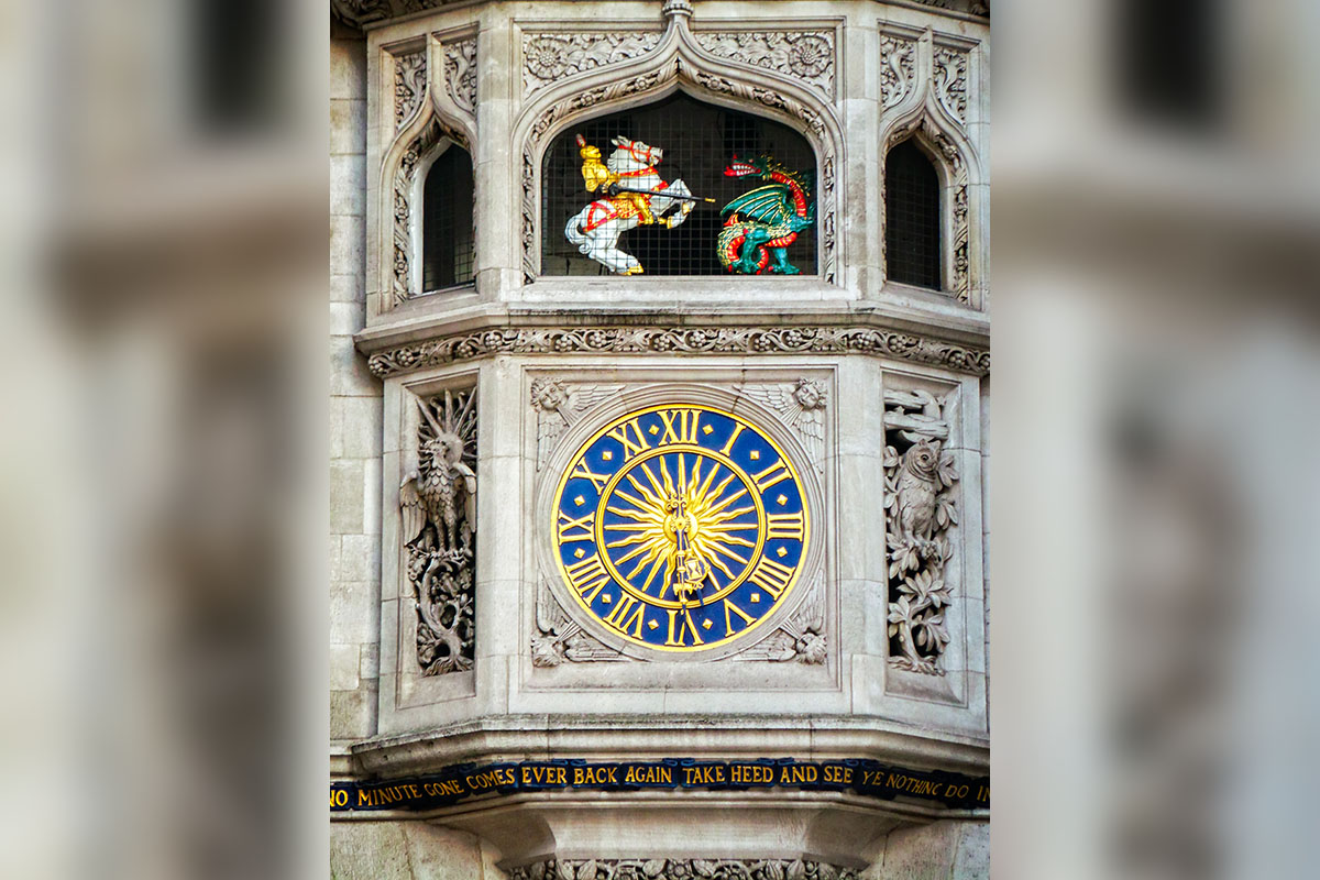 Ai quarti d’ora, i due personaggi prendono vita e combattono accanitamente. All’ora precisa, dopo l’ennesimo duello, San Giorgio a cavallo vince e uccide il Drago. Restaurato recentemente da Gillett & Johnston, l’orologio e i suoi automi sono tornati in funzione: lo spettacolo continua.