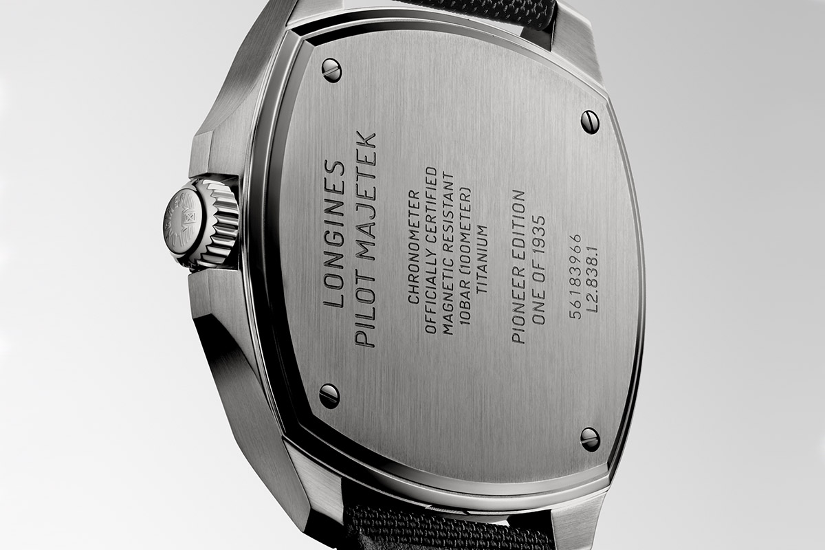 In più, è certificato Cosc (Contrôle Officiel Suisse des Chronomètres) come l’incisione “Chronometer Officially Certified” sul fondello ricorda non appena si ruota l’orologio per osservarlo sul retro. Sempre dal fondello si apprende un’altra importantissima informazione. Il Longines Pilot Majestic Pioneer Edition è un’edizione limitata a 1.935 esemplari. Non si tratta di appena 100 o 200 esemplari, ma – vista l’importanza storica dell’orologio – la produzione limitata ne accresce senza dubbio il valore collezionistico. Ciò giustifica anche il prezzo di 5.400 euro.