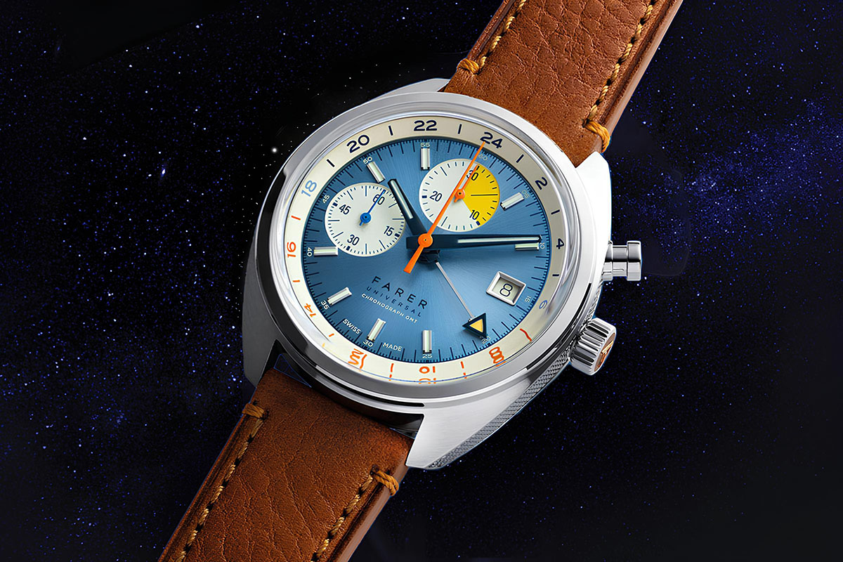 Cassa (40 mm) in acciaio. Movimento meccanico a carica manuale, calibro Sellita Sw532M elaboré, con 62 ore di autonomia, cronografo con secondo fuso orario e funzione giorno/notte. Quadrante mat, lancette luminescenti, lunetta in ceramica con scala telemetrica dalle indicazioni luminescenti, vetro zaffiro bombato, fondello inciso, cinturino Tropical (il packaging include un secondo cinturino in pelle di vitello). 1.970 euro.