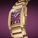 Le due referenze attuali differiscono tra loro solo per il materiale della cassa e per il colore: blu quella in oro bianco, viola quella in oro rosa. La forza di questi due orologi sta nella loro capacità di mantenere l’eleganza e la sobrietà tipiche della collezione, pur ricorrendo all’impiego delle pietre preziose sulla lunetta e del sofisticato guillochage sul quadrante.