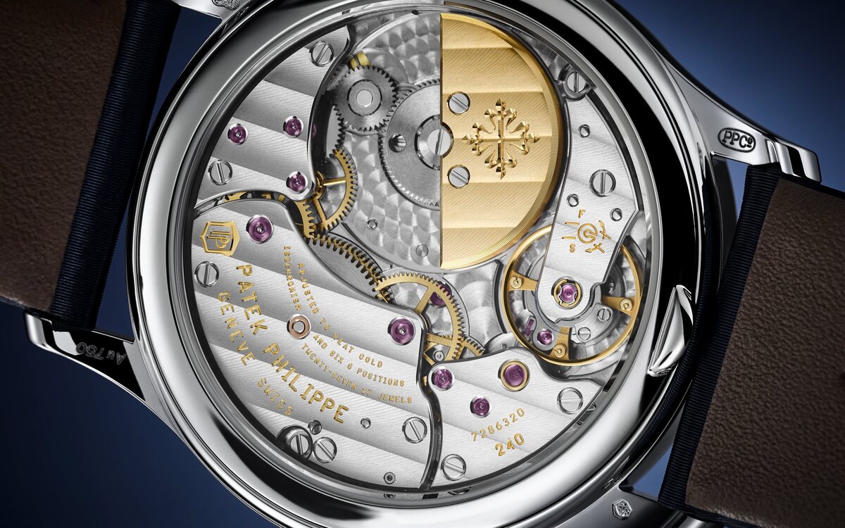 Scrivevo poco sopra che lo spessore straordinariamente contenuto della cassa è merito principalmente del movimento. Ebbene sì, perché il calibro 240 di Patek Philippe che dà vita all’orologio è uno dei fiori all’occhiello della Manifattura, spesso solo 2,53 mm. È un movimento automatico a micro-rotore presente anche in altri Calatrava e nel Golden Ellipse, con 27 rubini, una frequenza di marcia di 21.600 alternanze/ora e un diametro di 27,5 mm. A carica completa ha un’autonomia di almeno 48 ore.