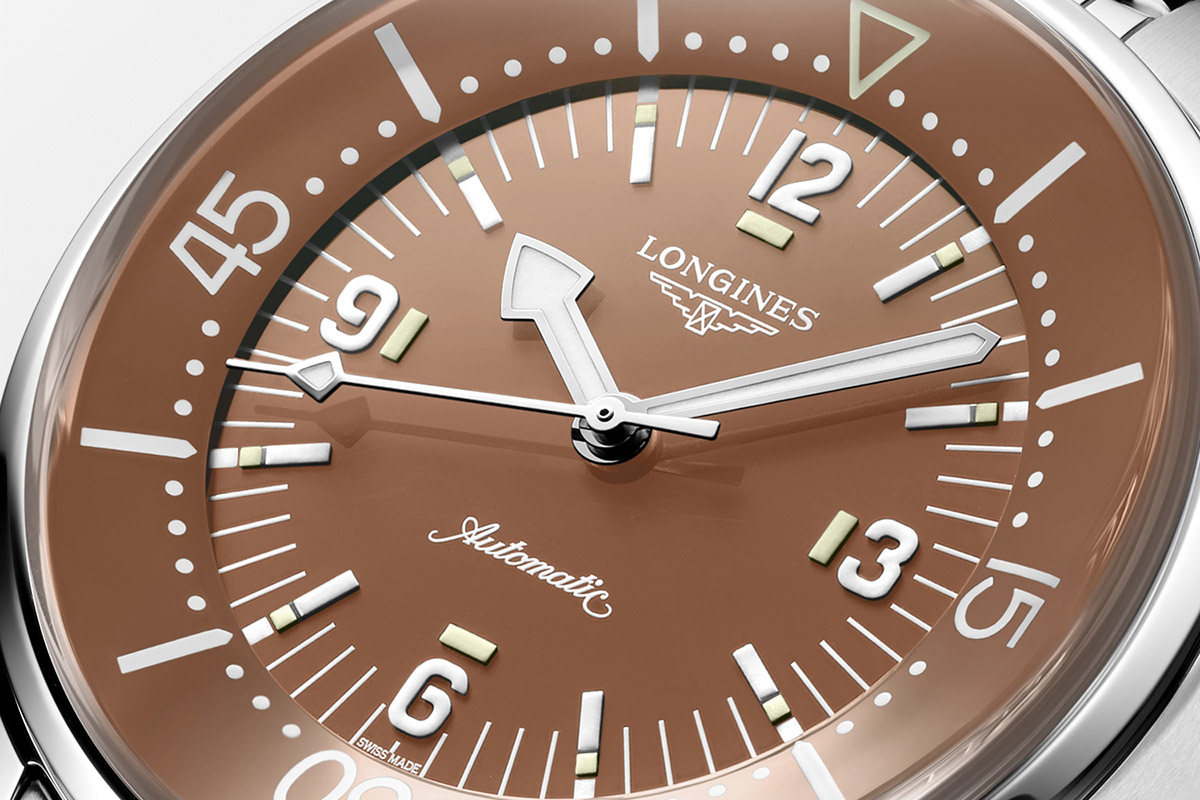 Perché l’assenza del datario? La domanda è lecita. Soprattutto perché, fino al 2023, le varie referenze del Longines Legend Diver (quelle da 36 e 42 mm) ne hanno invece fatto uso, aprendo nel quadrante la classica finestrella a ore 3. La risposta arriva dal desiderio di una grande fetta di pubblico di disporre di un display pulito, non interrotto da un foro, e che non distolga l’attenzione dalla semplice lettura dell’ora. E poi… diciamocelo: nell’era dello smartphone e degli onnipresenti display, in quanti solleviamo il polso per vedere che giorno è? Davvero in pochi.