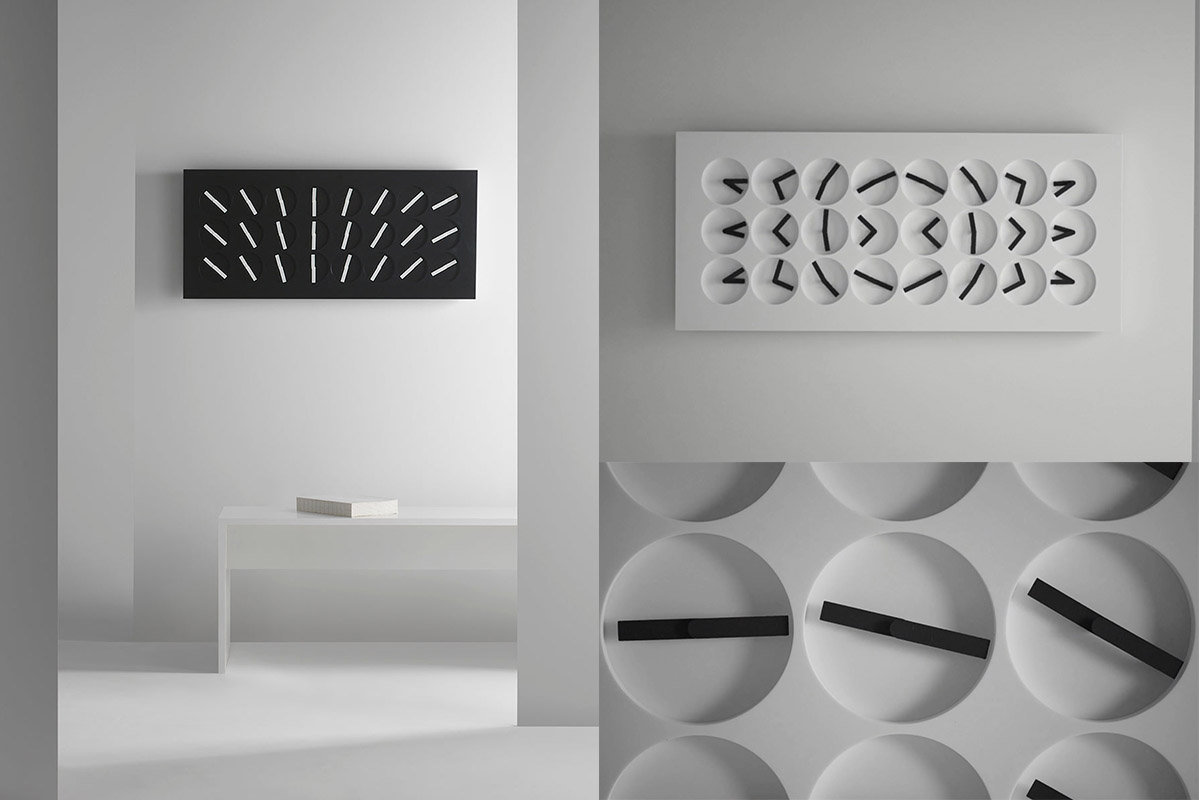 Per passare alla precisione del quarzo, un unicum è ClockClock 24, a metà fra scultura cinetica e orologio funzionale. Prodotto e assemblato nei laboratori di Humans since 1982, studio creativo pionieristico svedese, conta 24 orologi analogici mossi da 48 motori che riportano l’ora esatta in un unico display digitale. Ogni singola lancetta si muove in sincronia con le altre, per mostrare l’indicazione oraria in modo collettivo invece che individuale, con una programmazione in 12 o 24 ore. Ma il bello avviene al cambio di ogni minuto, quando il moto di ciascun orologio compone una danza coordinata, secondo tre modalità (a scelta): minima, media o elaborata. Uno spettacolo inatteso e sorprendente.