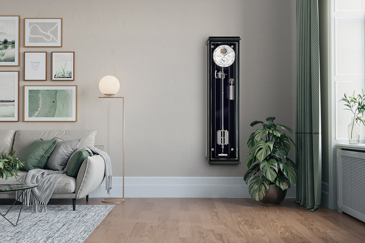 In questo caso abbiamo scelto una pendola di precisione dall’impostazione classica: il quadrante a regolatore, argentato, ha le lancette in acciaio azzurrato alla fiamma e il contatore dei secondi aperto sullo scappamento Graham. Grazie a sistemi di compensazione della temperatura e della pressione atmosferica che agiscono sul pendolo e ad altri dispositivi specifici per assicurare un’ottimale costanza di marcia, il movimento offre prestazioni impressionanti: lo scarto si aggira tra 1 e 2 secondi al mese.