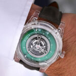 Da citare anche Lotus Tourbillon realizzato nel 2021 da Kross Studio x Alain Silberstein, in cui il tourbillon centrale ricorda proprio un fiore di loto. Realizzato in 18 esemplari, non è che una delle tante variazione sul tema del tourbillon flottante (o galleggiante) del Brand fondato da Marco Tedeschi. Apparso sempre nel 2021, nel tempo è stato sviluppato in una vastissima collezione, in cui pezzi allegorici e divertenti convivono con altri più “seri” o seriosi. Pensiamo ai modelli dedicati alla Morte Nera o a Wonder Woman, a Batman, a Space Jam o ai Transformers… E ancora quelli di Games of Thrones/House of the Dragon oppure con il quadrante in pietra dura di ogni sorta e colore. Tutti rigorosamente in tiratura limitata, molti già terminati.