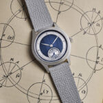 Continua la fortunata serie dei MoonSwatch con un’inedita “complicazione” (le virgolette sono d’obbligo, visto il movimento al quarzo): le fasi terrestri. Ovvero come il nostro Pianeta apparirebbe a un ipotetico osservatore che si trovasse sulla Luna per un lungo periodo. La funzione, brevettata, è visibile a ore 10 (anche al buio, grazie al materiale luminescente degli oceani), mentre alle 2 si trovano le consuete fasi lunari. Con la cassa (42 mm) in Bioceramic e il cinturino in Velcro, il nuovo cronografo ha la scala tachimetrica sulla lunetta con tanto di Dot Over Ninety. 330 euro.