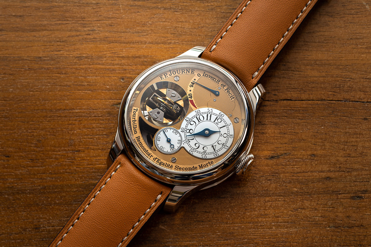 Nel 2003, Journe pensò bene di aggiungere alla già notevole meccanica del Tourbillon à Remontoir d’Egalité un’ulteriore complicazione: quella dei secondi morti, spesso in Italia chiamati secondi indipendenti. In questo caso, l’idea ancor più particolare è quella di far azionare la lancetta dei secondi direttamente dal remontoir d’égalité. La lancetta dei secondi si muove con uno scatto netto non appena il secondo è trascorso, cioè morto – da cui la denominazione, altrimenti difficile da interpretare.