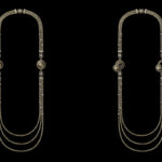 A partire dal Sautoir Lion Medaillon, un gioiello d’impronta Art Déco – un periodo artistico vissuto in prima persona dalla grande couturière. La lunga collana aperta è composta da due cordoncini simmetrici di fili d’oro giallo intrecciati, arricchiti da diamanti, boule d’onice sfaccettate a mano e tubicini in onice, oro e diamanti. Al centro spicca un medaglione con la testa del leone sempre in oro e diamanti, la cui costruzione ha rappresentato un’autentica sfida tecnica. È fatto di diversi componenti assemblati tra loro, ma non mostra alcuna vite né meccanismo. Rifinito da una fascia d’onice e da un giro di diamanti, rivela un piccolo quadrante sul lato posteriore. E nasconde in modo ingegnoso il sistema di rimessa all’ora, con un pulsantino invisibile a ore 6.