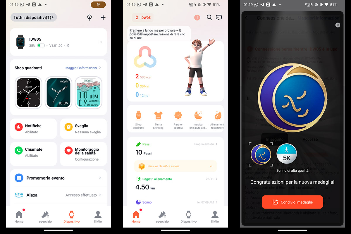 La companion app VeryFit, disponibile sia per Android che per iOS, sebbene non raffinata come quelle di altri brand, offre un’interfaccia intuitiva e funzionale. La sincronizzazione dei dati con Google Fit o Strava è rapida e l’organizzazione delle statistiche risulta chiara anche per gli utenti meno esperti.