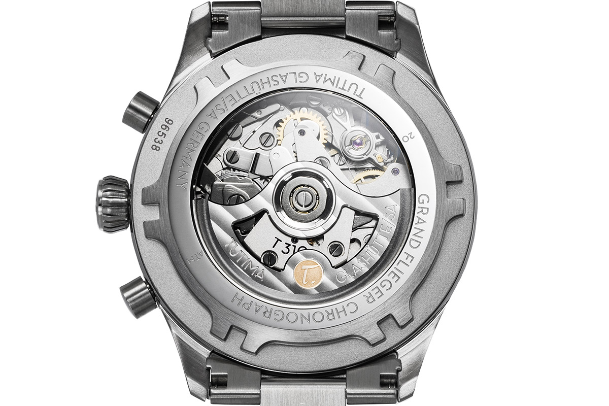 Tutima Glashütte, nel corso dei decenni, ha inserito nei propri orologi movimenti di manifattura e di fornitura. Il Lemania 5100 utilizzato con la referenza Tutima 798 dedicata ai piloti Nato dei primi anni ’80 è un esempio di questi ultimi. Il già citato Calibro 59 del Fliegerchronograph del 1941 rappresenta i primi, con i suoi due anni di sviluppo e perfezionamenti continui. Sui calibri incassati nei Grand Flieger Airport, l’azienda non si sbilancia. Li chiama Tutima 310 per la versione cronografica e Tutima 330 per la versione “solo tempo”, descrivendone le principali caratteristiche.