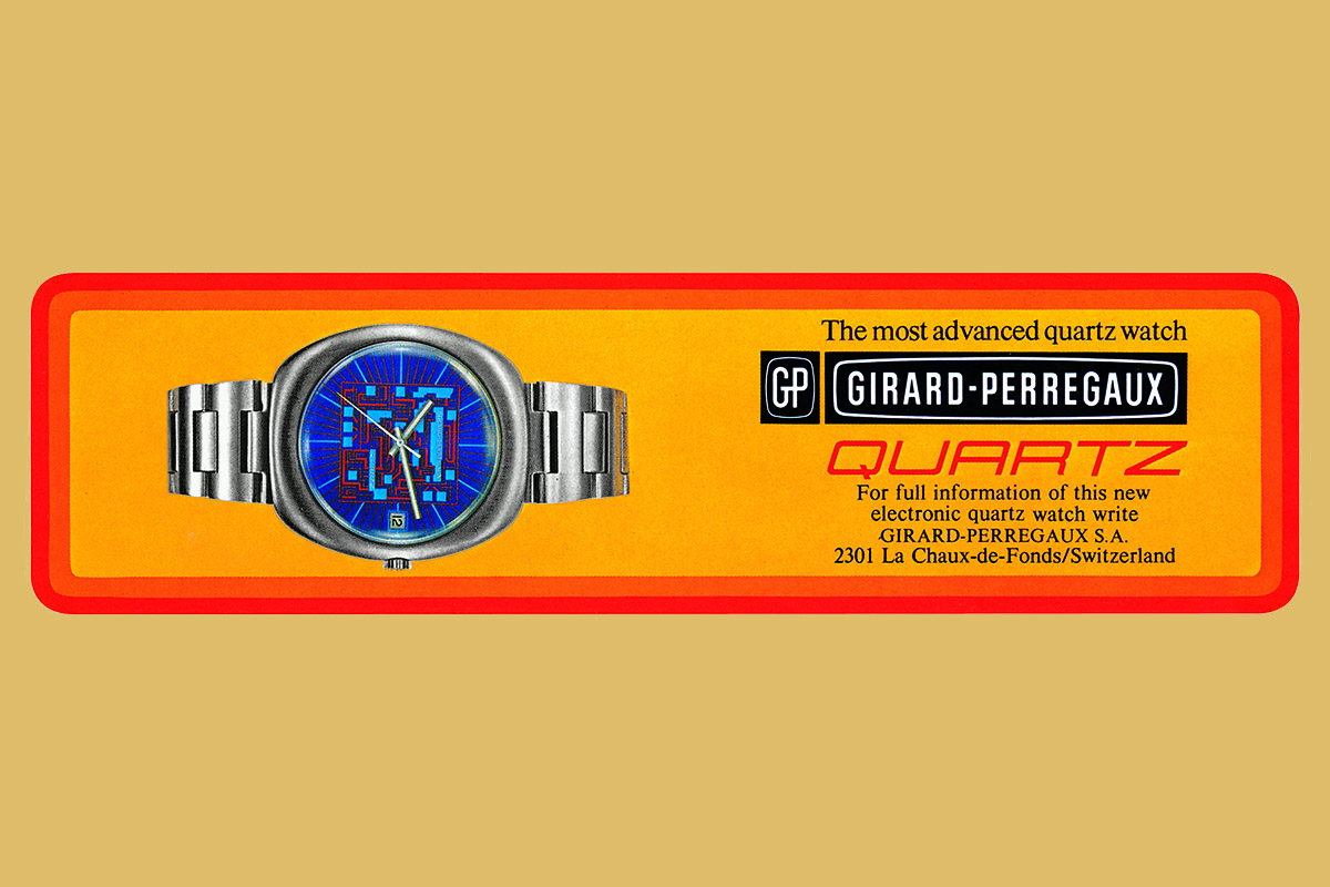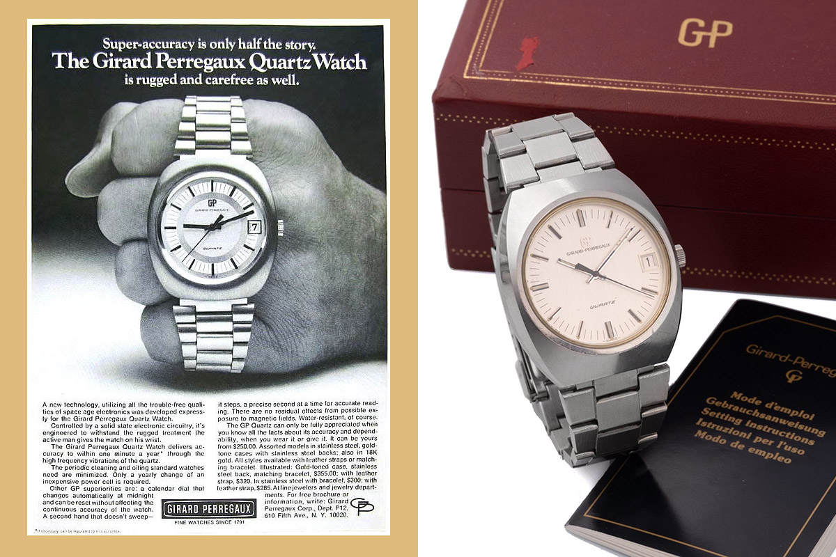 Come ho già scritto altrove, si racconta che l’orologio al quarzo sia stato inventato otto volte in tre diversi continenti. Una di queste volte sicuramente è dovuta a Girard-Perregaux: e la cosa curiosa è che alla Casa di La Chaux-de-Fonds sono stati sufficienti 5 anni e 5 persone per arrivare a confezionarlo in forma definitiva. Si chiamerà calibro GP-350 e racchiuderà tutti i componenti tipici di un quarzo come lo intendiamo ai nostri giorni. Ma partiamo dall’inizio.