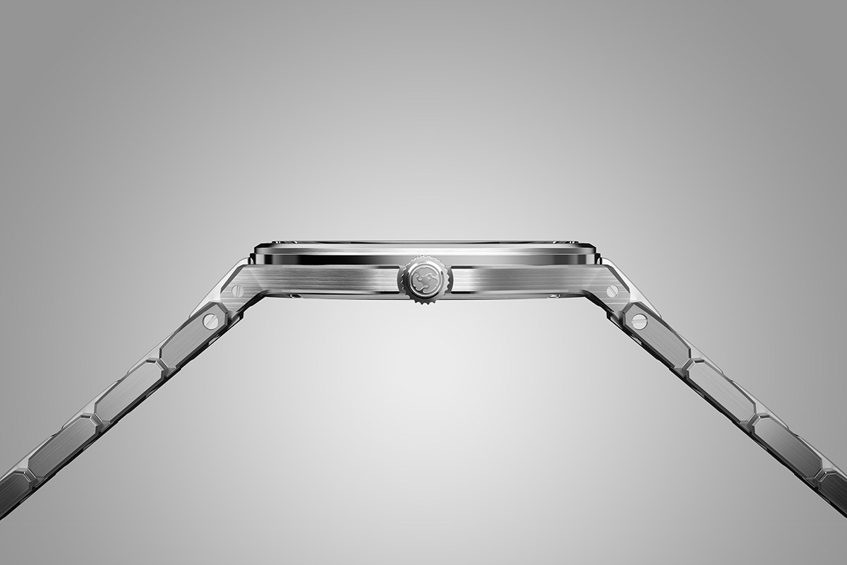 Merita una menzione infine il micro-rotore di carica, bidirezionale, integrato nel movimento e ben visibile anche dal lato quadrante. Rodiato in superficie e impreziosito da un pattern in rilievo su entrambi i lati, contribuisce a ridurre al minimo lo spessore complessivo del calibro. Ricordo che il micro-rotore decentrato rappresenta di per sé una soluzione tecnica raffinata tipica dell’alta orologeria. Ma è ricorrente in tutti i calibri automatici della Marca, fino a diventarne una sorta di caratteristica costitutiva.