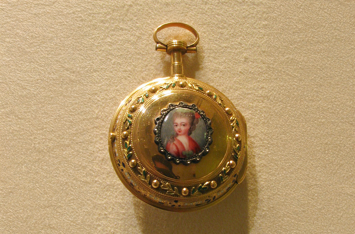 Dopo il 1750, nella produzione francese e in quella ginevrina diventa comune l’uso di inserire una placchetta, solitamente di forma rotonda od ovale, contenente un minuscolo ritratto o altro soggetto, dipinto a smalto, nella parte centrale del fondello. La rimanente parte a vista di quest’ultimo era solitamente lavorata a bulino con decorazioni nello stile in voga, oppure decorata a bassorilievo.