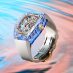 In the press kit for the RM 75-01 Flying Tourbillon Sapphire, the brand describes the watch as “…embodying a metaphysical balance. The modernity and technical sophistication of its sculptural calibre harmonise with a timeless inspiration drawn from historical architecture and the softness of the oceans — a duality that perfectly reflects the brand’s artistic and technical approach, where diverse worlds converge to open new creative horizons“.