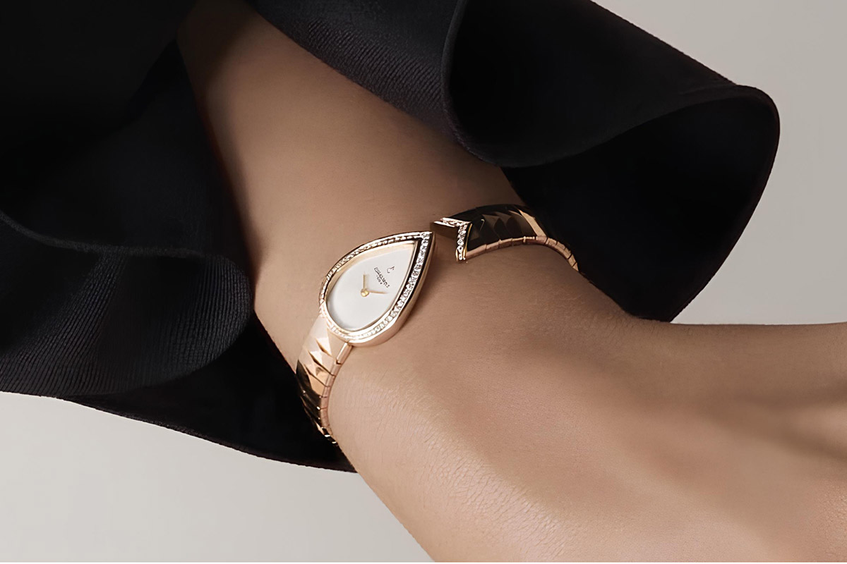 Non si deve essere esperte di moda per conoscerli. I bangle sono un classico della gioielleria: bracciali rigidi di vario spessore, dai cerchi più sottili – da indossare in quantità sullo stesso polso – a quelli più voluminosi, tipo polsino (senza esagerare, alrimenti sono chiamati manchette). Realizzati in tutti i tipi di materiali, risultano particolarmente d’effetto se forgiati in metalli nobili, magari arricchiti di pietre preziose. Di recente però sono stati adottati anche dal mondo delle lancette e sono diventati la tendenza del momento per gli orologi-gioiello. Se n’è avuto conferma a Ginevra, all’ultima edizione di Watches and Wonders, dove diverse case hanno presentato i bangle watch di nuova generazione.