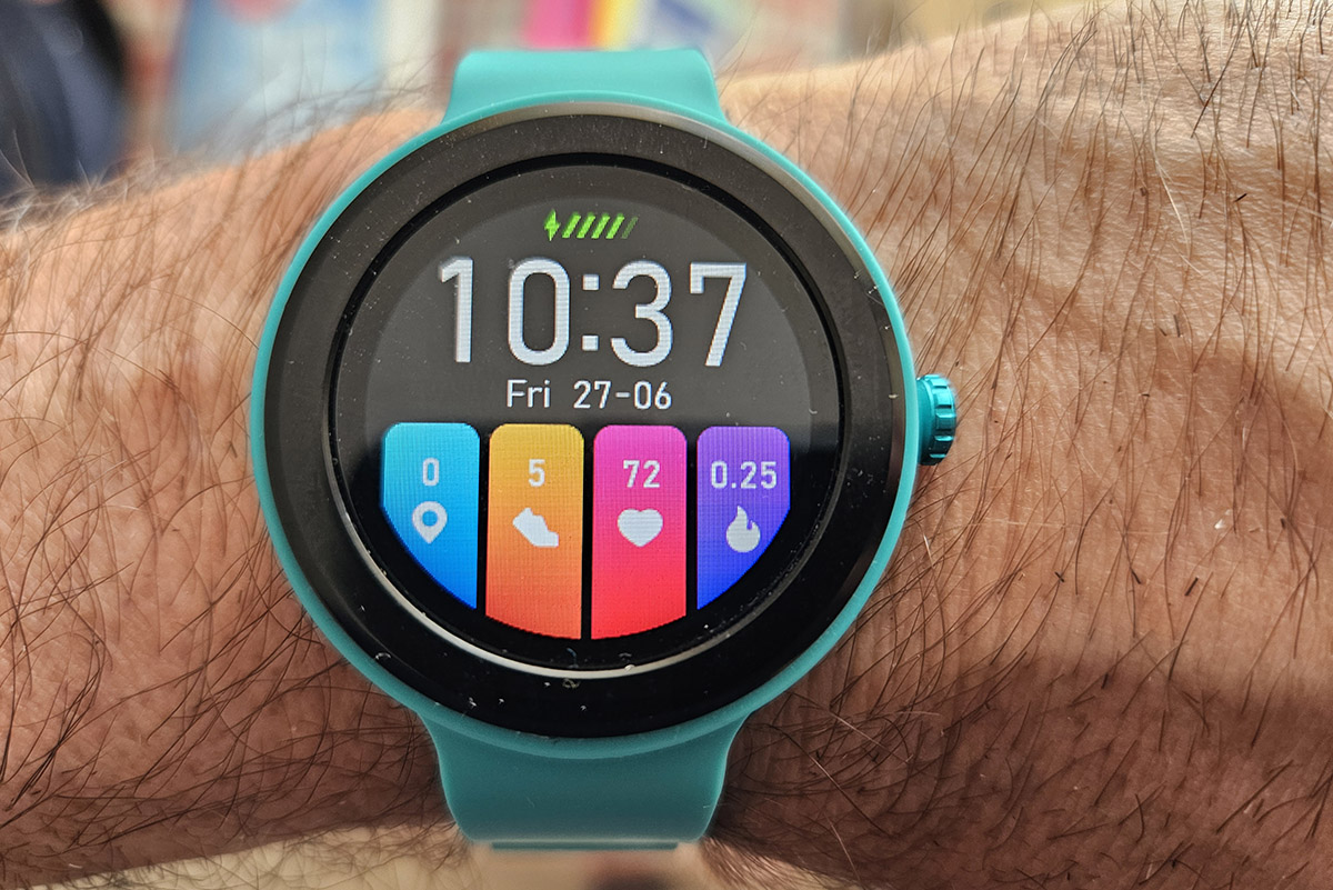 La batteria da 150 mAh regge bene. Nella mia settimana di prova con un uso normale (notifiche attive, monitoraggio del sonno, qualche sessione sportiva), l’orologio ha raggiunto circa quattro giorni pieni prima di dover essere ricaricato. Il sistema di ricarica magnetica a due pin è pratico e veloce, anche se il cavo è proprietario e va tenuto con cura.