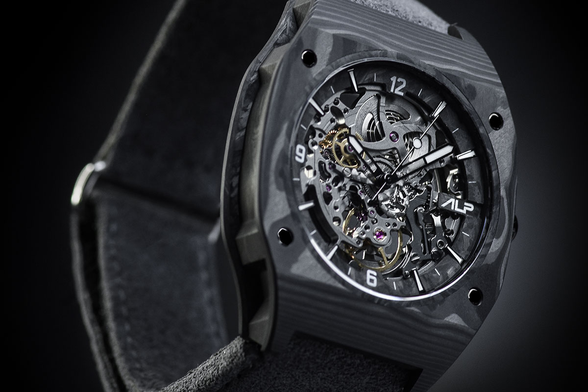 Il risultato è un orologio da 23 grammi, che diventano 27,8 con il cinturino. E i 23 grammi, si capisce, sono la somma del peso della cassa e di quello del movimento. Che non è di manifattura: al momento, il focus di ALP è sui materiali, per investire sulla meccanica ci sarà tempo. Meglio puntare adesso su qualcosa di affidabile e leggero.