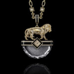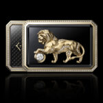 First of all, the collection includes three sautoir watches, two of which feature pendants, as tradition dictates. All in yellow gold, set with high-carat diamonds and often embellished with onyx and lacquer, they are powered by quartz movements, for obvious reasons of space. Starting with the ‘secret watch’ with an onyx medallion, in which the dial is hidden by the full pavé lion’s head (which alone contains more than 8 carats of diamonds), which rotates on itself to reveal the time. The chain, made entirely by hand, ends with a one-carat central diamond. The latter and the attention to detail, such as the blackened but polished gold cord around the large pendant, explain the 350 hours of work required to complete the entire creation.