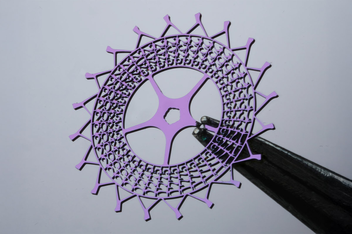 Breguet è stato un pioniere nell’utilizzo del silicio. Già nel 2006 iniziò la propria ricerca su questo materiale diffusissimo in natura eppure ricco di qualità: più leggero ma più duro dell’acciaio, è insensibile all’attrazione e all’influenza magnetica, ed è altamente resistente alla corrosione e all’usura. In più riduce l’inerzia e non richiede lubrificanti. Tagliato al laser, permette di realizzare forme nuove e complesse – o, come dicono i tecnici, di offrire una “libertà geometrica” impressionante – con precisione micrometrica.