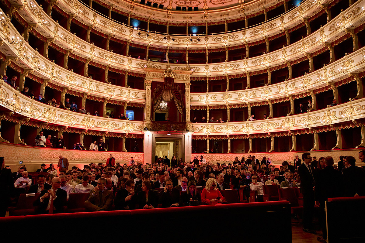 Comincio quindi dai primi momenti della manifestazione. Quando si sono spente le luci nella sontuosa sala del Teatro Regio e sullo schermo dietro il palco è stato proiettato un video. Un suggestivo “corto”, fatto di immagini macro che mettevano in luce il parallelo fra l’alta orologeria e l’alta cucina, realizzato naturalmente da Blancpain. Blancpain Gourmet, come lo definiva Augusto Veroni in un’altra, analoga occasione, in cui lo chef mentore – vale a dire consigliere, maestro e sostegno per i cuochi delle nuove generazioni – era Niko Romito. Ed è proprio questa similitudine fra haute horlogerie e haute cuisine la chiave di lettura della collaborazione con la Guida Michelin e insieme il leitmotiv dell’evento. Lo vedremo fra poco.